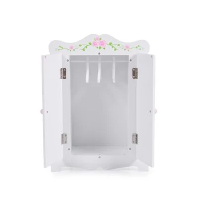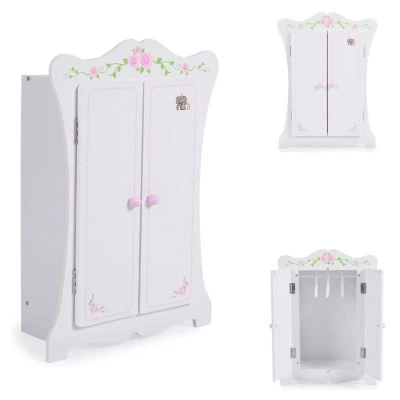 Puppenkleiderschrank aus MDF-Holz Altersempfehlung: ab 3 Jahren mit 3 Kleiderbügeln modernes Design schnell aufgebaut für Ordnung bei der Puppenkleidung